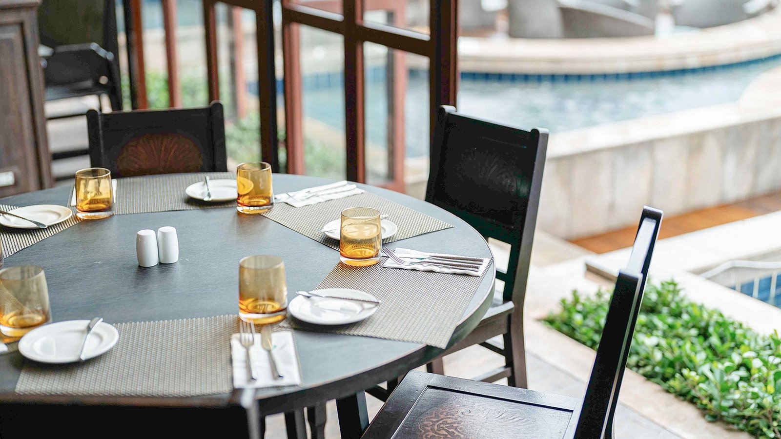 Sunset Restaurant ממוקמת באגף החדש ומציעה תפריט פיוז'ן מול הבריכה.