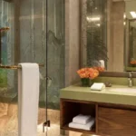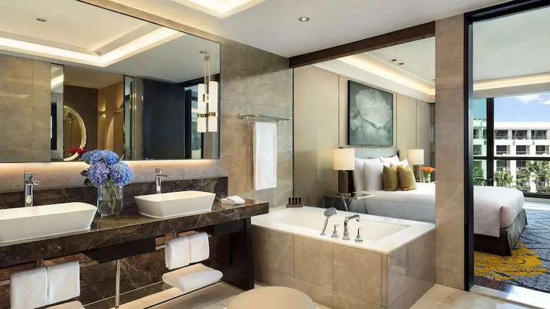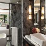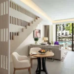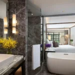 עיצוב פנים: שימוש בחומרי גלם יוקרתיים כמו וילונות משי, אמבטיות שיש מפנקות ופרטי אמנות תאילנדיים מקומיים.